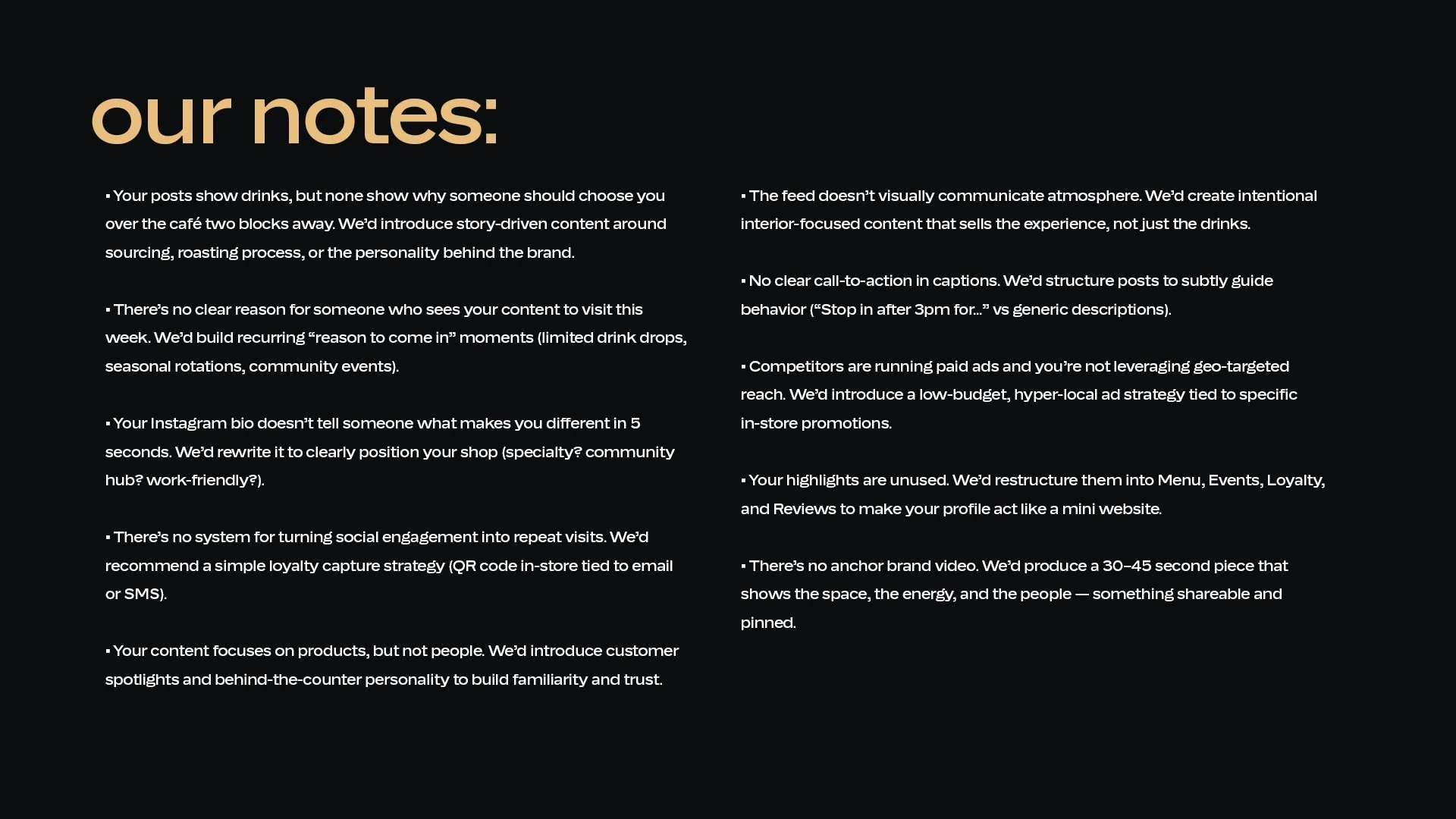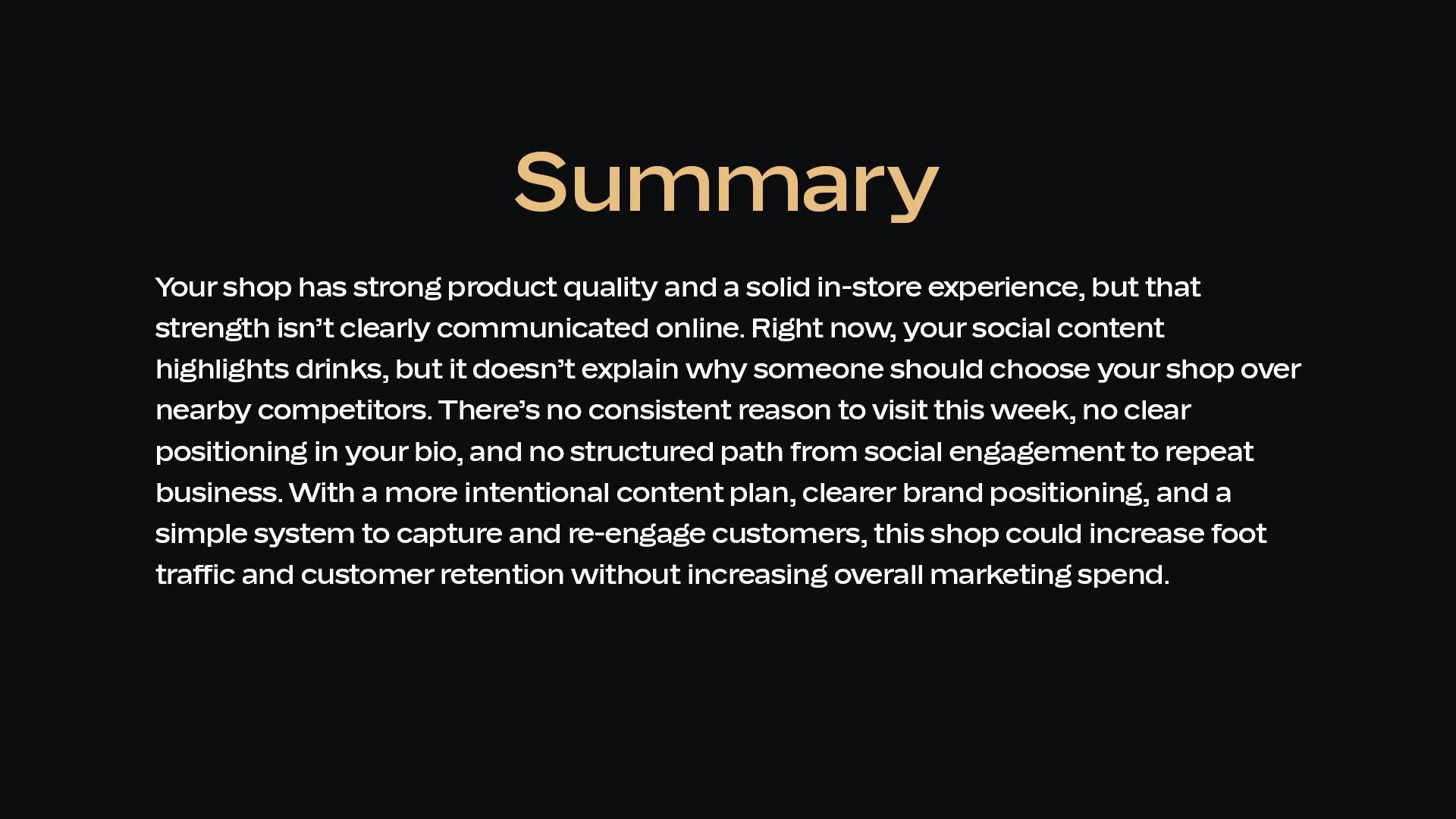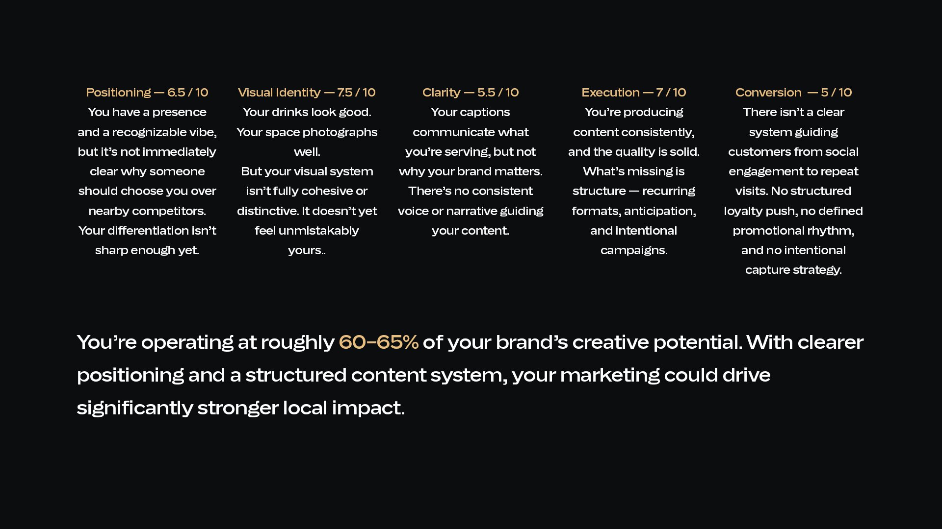 See exactly what’s working, what isn’t, and what we would change.
